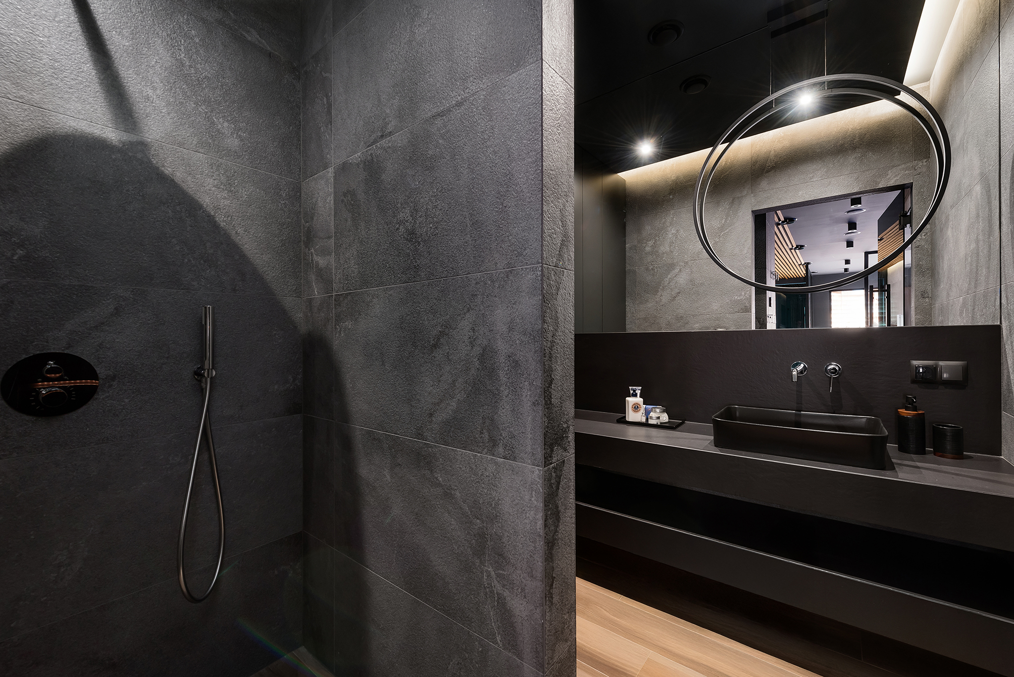 Strefa spa stała się azylem relaksu dla całej rodziny. Ukryta w piwnicy, z dala od hałasu i światła, jest miejscem, w którym czas naprawdę się zatrzymuje.